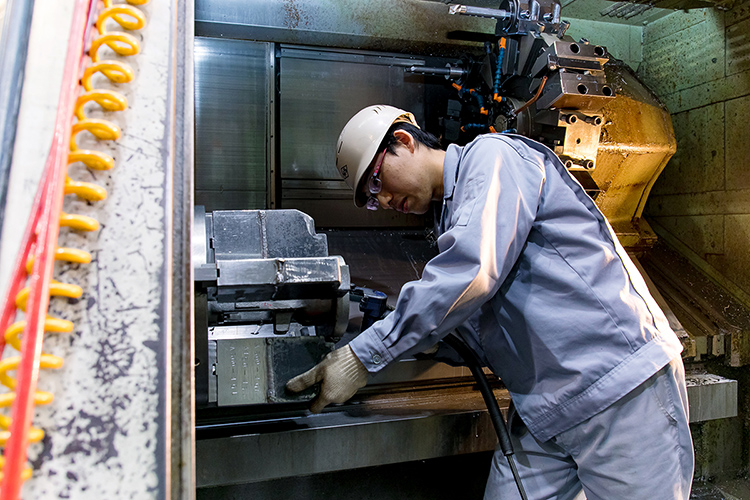 入社してからの1年間は、製造の様々な工程を回って当社のモノづくりを学びました。現在はバルブのボンネット部分の加工を担当。NC旋盤を使って中を削り、内径の仕上げまで行っています。加工条件は材料や形によって異なり、過去の実績を応用できるものもあれば、一から考えなくてはならない新規の製品も。いずれも製品ごとに身につけるべき知識が多くあるため、経験を重ねることがスキルアップにつながっています。